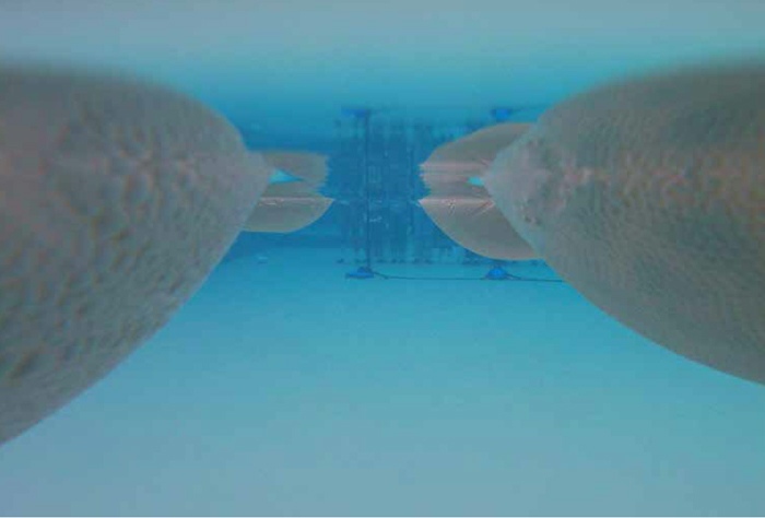 Pour son exposition personnelle au Frac des Pays de la Loire à Nantes, Lina Lapelytè propose une version inédite de son installation vidéo What happens with a dead fish ? Cette nouvelle proposition restitue une performance musicale organisée par l’artiste avec une chorale d’amateurs dans une piscine en plein air créée pour l’occasion. Les membres du choeur – revêtus d’une tenue imperméable – chantent et se déplacent lentement en enchaînant une succession de tableaux vivants.